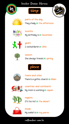 Já a preposição de tempo (preposition of time) nos informa quando algo acontece.