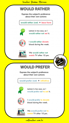 Quando expressam a preferência do sujeito da frase em relação a suas próprias ações E de mais alguém ou apenas a ações de outra pessoa:
