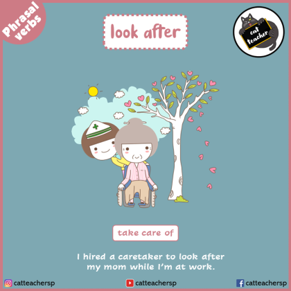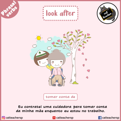 Look after é uma expressão muito comum em inglês e tem o significado de cuidar de alguém ou algo. É frequentemente usada para descrever a responsabilidade de cuidar de pessoas, animais ou objetos de forma carinhosa e protetora.